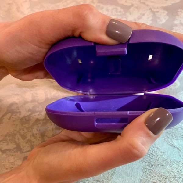 To open the Pessary Box, press the indented portion on the top/front of the lid. Hold bottom of box firmly and open. After several uses, opening the box becomes easier.